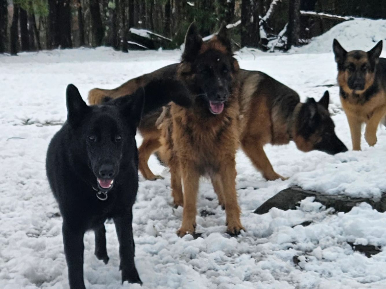 Chief is a majestic solid black German Shepherd with a playful spirit and sharp intelligence. His love for water and people makes him the perfect companion, always eager for adventure and affection. Loyal and energetic, Chief's charisma shines through in everything he does, whether he's splashing in the water or forming deep bonds with those around him. Chief is now available for stud services, offering his outstanding genetics to improve the breed.